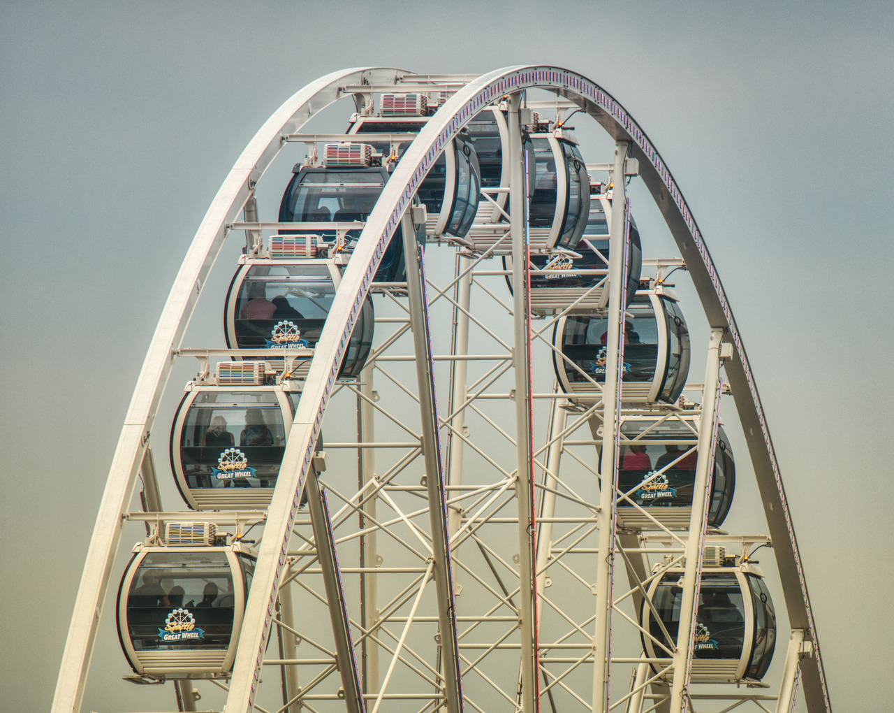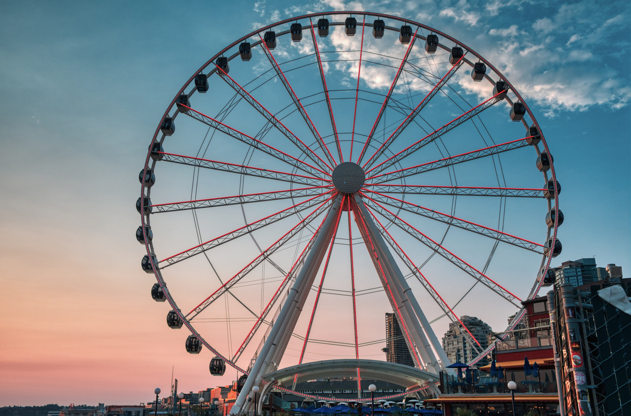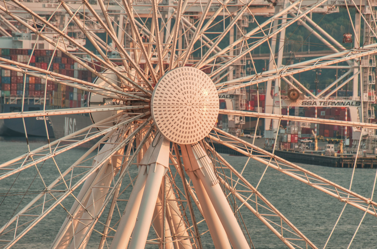Seattle Great Wheel, it’s a big thing, we paid a ticket to get onboard, but the glass was kinda dirty and the pictures taken from inside the cabinets weren’t as good as these ones, taken from the outside.